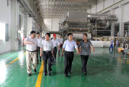 圖為曹市長一行深入第六生產(chǎn)基地造紙一車間調(diào)研