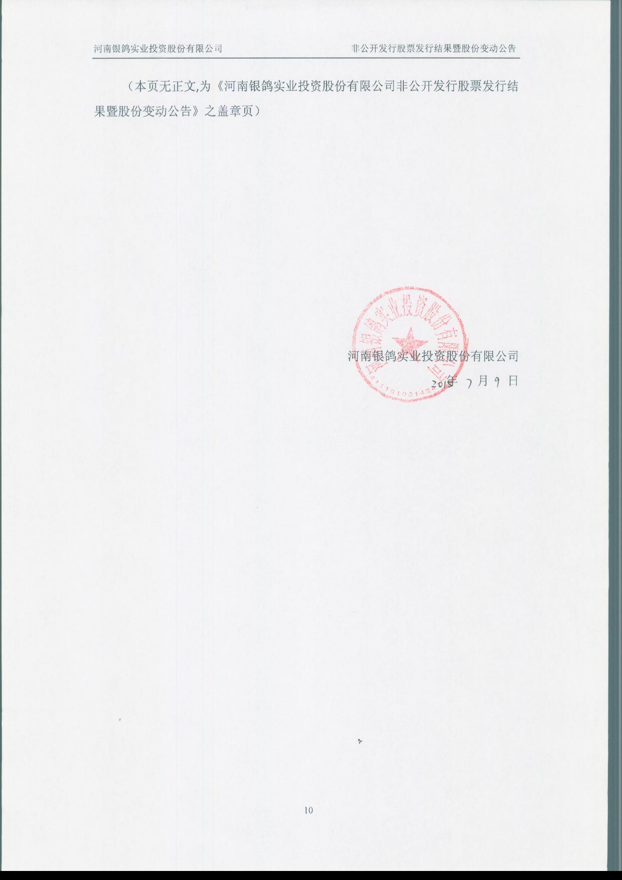 2、2015年5月29日,中國(guó)證監(jiān)會(huì)《關(guān)于核準(zhǔn)河南銀鴿實(shí)業(yè)投資股份有限公司非公開(kāi)發(fā)行股票的批復(fù)》(證監(jiān)許可[2015]1086號(hào))核準(zhǔn)了銀鴿投資本次非公開(kāi)發(fā)行。