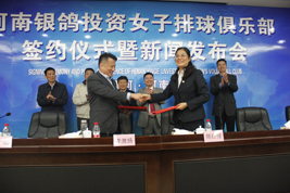 時(shí)值十九大勝利召開(kāi)之際,習(xí)近平總書(shū)記在報(bào)告中提到要激發(fā)全民族文化創(chuàng)新創(chuàng)造活力,健全現(xiàn)代文化產(chǎn)業(yè)體系和市場(chǎng)體系,加快推進(jìn)體育強(qiáng)國(guó)建設(shè)。乘著盛會(huì)的東風(fēng),在恰逢銀鴿50華誕的日子里,10月19日,河南省球類運(yùn)動(dòng)管理中心與河南銀鴿實(shí)業(yè)投資股份有限公司合作成立河南銀鴿女排俱樂(lè)部簽約儀式在漯河銀鴿總部會(huì)議室隆重舉行。這標(biāo)志著在中國(guó)排球超級(jí)聯(lián)賽女子排球的賽場(chǎng)上,河南女排將身披“銀鴿投資”戰(zhàn)袍征戰(zhàn)即將開(kāi)賽的2017—2018中國(guó)排球超級(jí)聯(lián)賽。
