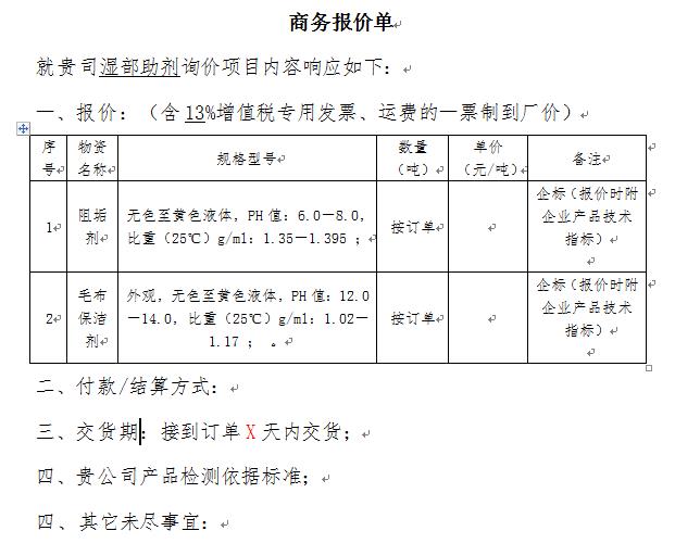 三、報(bào)價(jià)要求:要求開具13%增值稅專用發(fā)票、運(yùn)費(fèi)一票制到廠價(jià)。