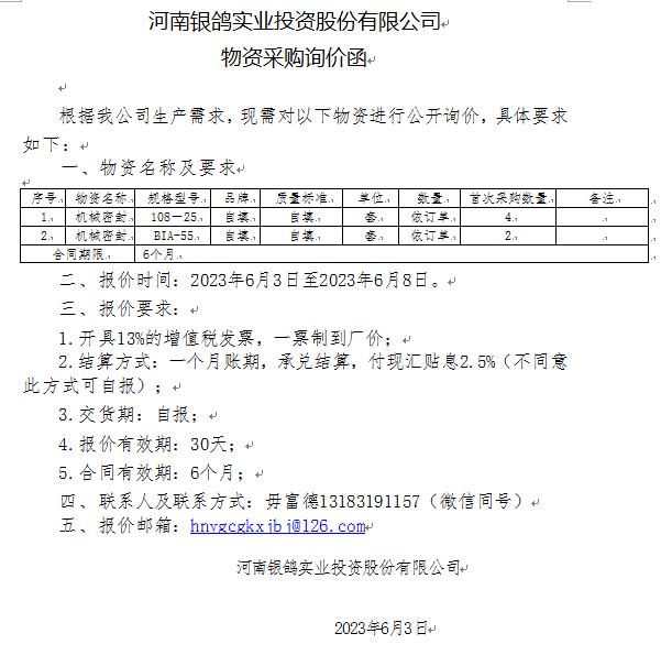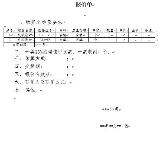 根據(jù)我公司生產(chǎn)需求,現(xiàn)需向你公司對(duì)以下物資進(jìn)行公開詢價(jià),具體要求如下: