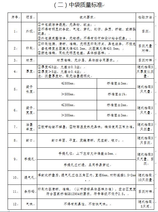 (一)卷膜質(zhì)量標(biāo)準(zhǔn)