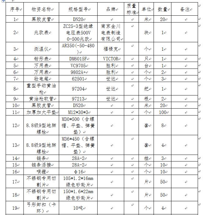 根據(jù)我公司生產(chǎn)需求,現(xiàn)需向你公司對以下物資進(jìn)行公開詢價,具體要求如下: