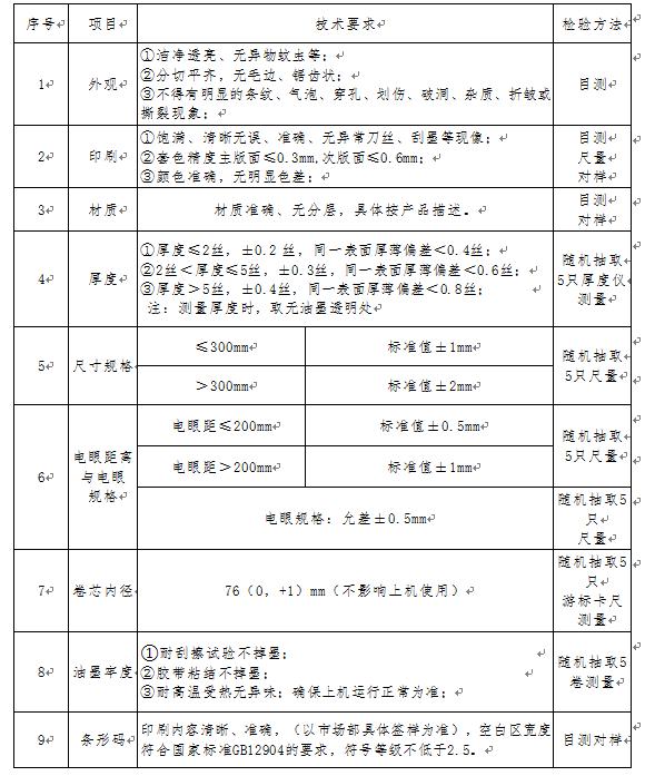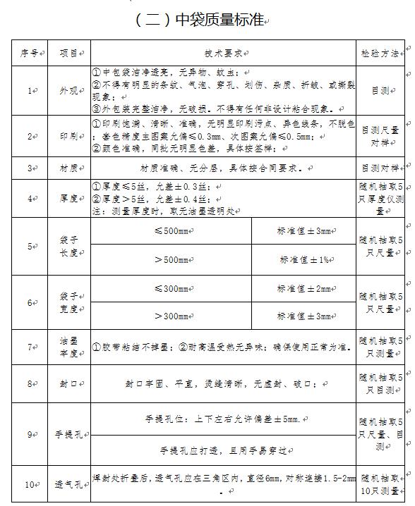 (一)卷膜質(zhì)量標(biāo)準(zhǔn)