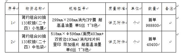 一、物資名稱及要求