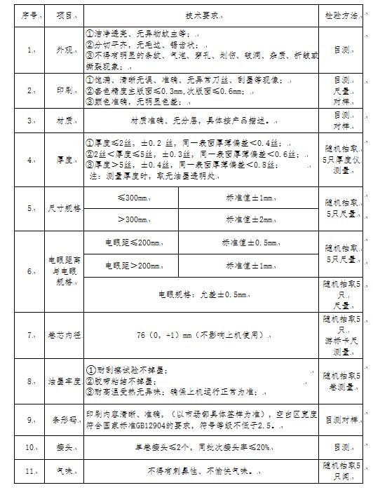 (一)卷膜質(zhì)量標準
