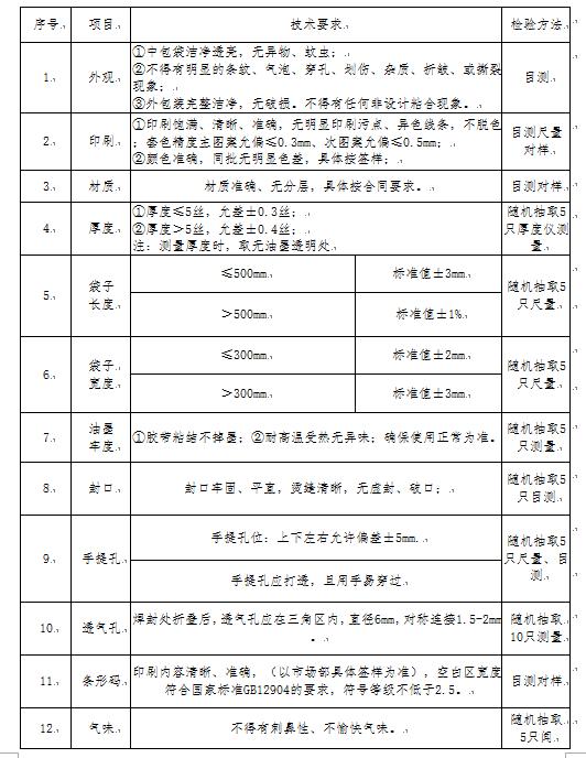 (二)中袋質(zhì)量標準