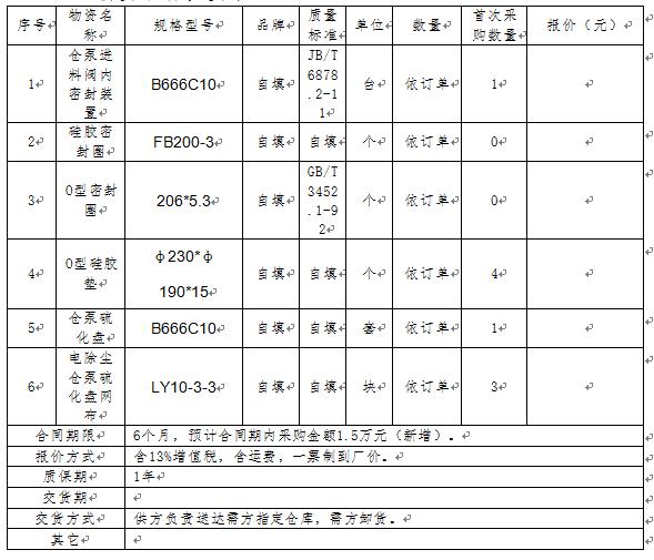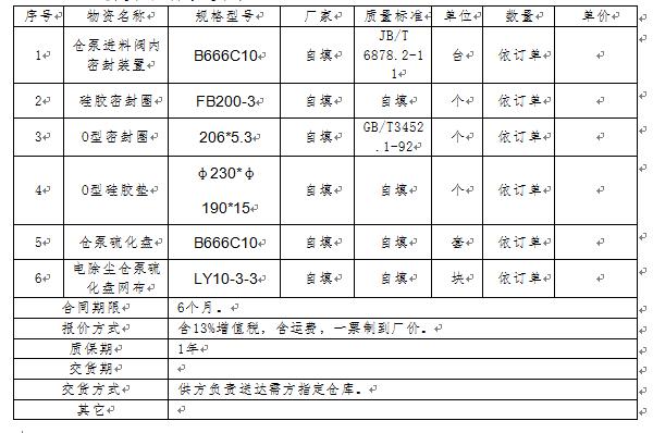 根據(jù)我公司生產(chǎn)需求,現(xiàn)需對以下物資進(jìn)行公開詢價,具體要求如下: