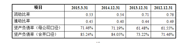 報(bào)告期內(nèi),公司主要通過(guò)借款籌措流動(dòng)資金,隨著借款規(guī)模的增加,公司流動(dòng)比率、速動(dòng)比率一直維持較低水平,資產(chǎn)負(fù)債率逐年提高,公司償債風(fēng)險(xiǎn)呈上升趨勢(shì)。