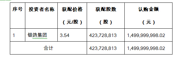 (3)根據(jù)本次發(fā)行價(jià)格,銀鴿集團(tuán)本次認(rèn)購(gòu)423,728,813股銀鴿投資股票。