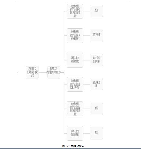 報(bào)告主體劃分了銀鴿第二生產(chǎn)基地識(shí)別了柴油、石灰石分解、電力(華中地區(qū)電網(wǎng))、廢水厭氧處理、煙煤、蒸汽等6個(gè)識(shí)別項(xiàng)。具體核算邊界如下所示。