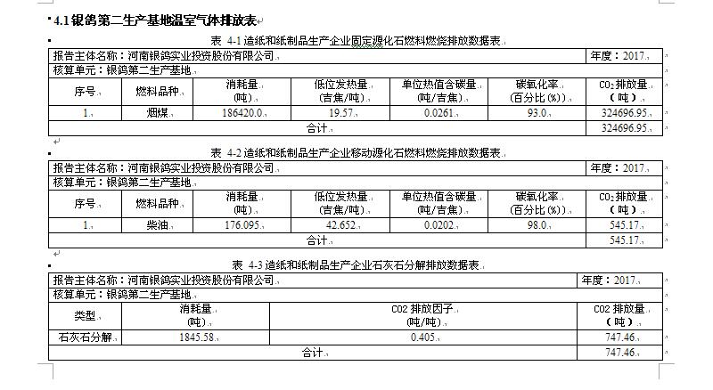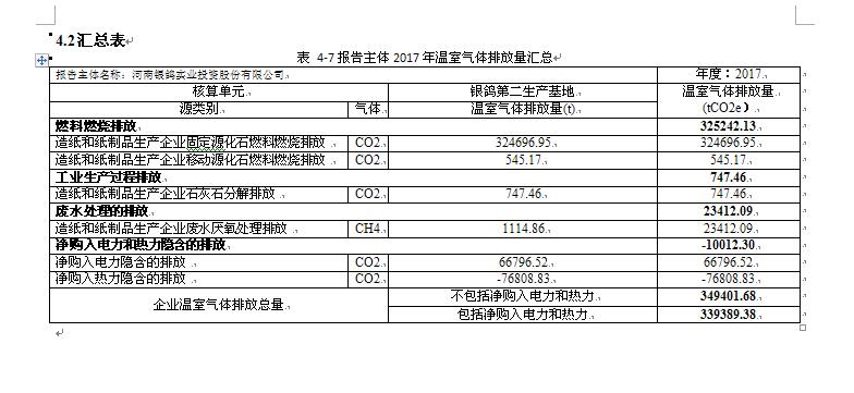 根據(jù)《國(guó)家發(fā)展改革委關(guān)于組織開(kāi)展重點(diǎn)企(事)業(yè)單位溫室氣體排放報(bào)告工作的通知(發(fā)改氣候[2014]63號(hào))》、《碳排放權(quán)交易管理暫行辦法》等文件,遵照國(guó)家印發(fā)的三批企業(yè)溫室氣體核算方法與報(bào)告指南(試行)中的相關(guān)指南,河南銀鴿實(shí)業(yè)投資股份有限公司核算了2017年度溫室氣體排放量,并填寫(xiě)了相關(guān)數(shù)據(jù)表格,F(xiàn)將有關(guān)情況報(bào)告如下。